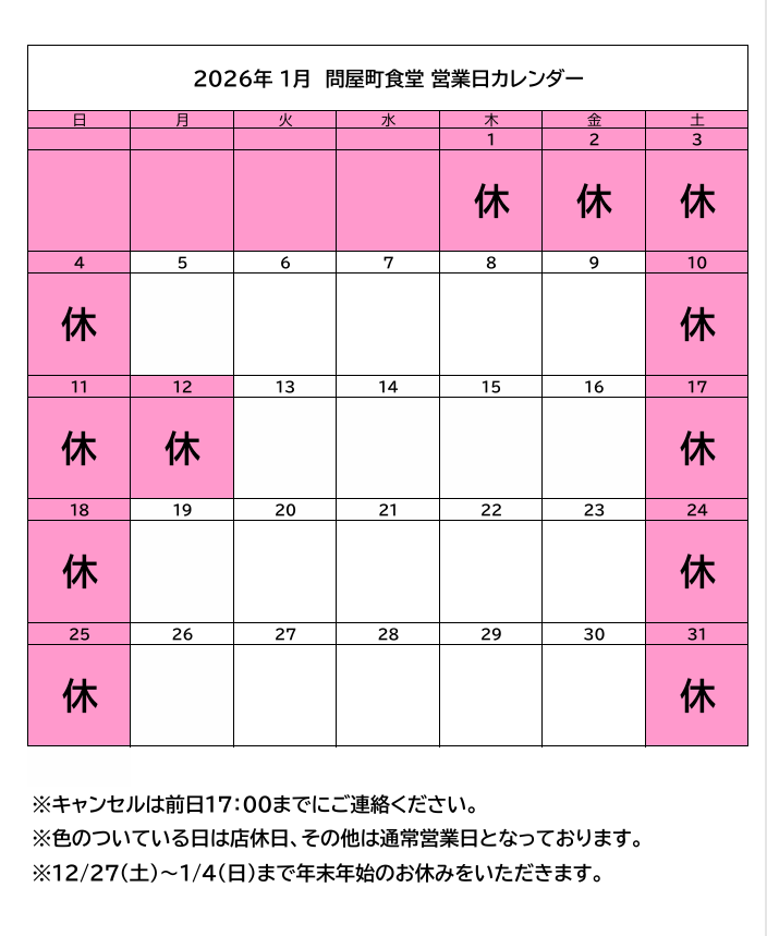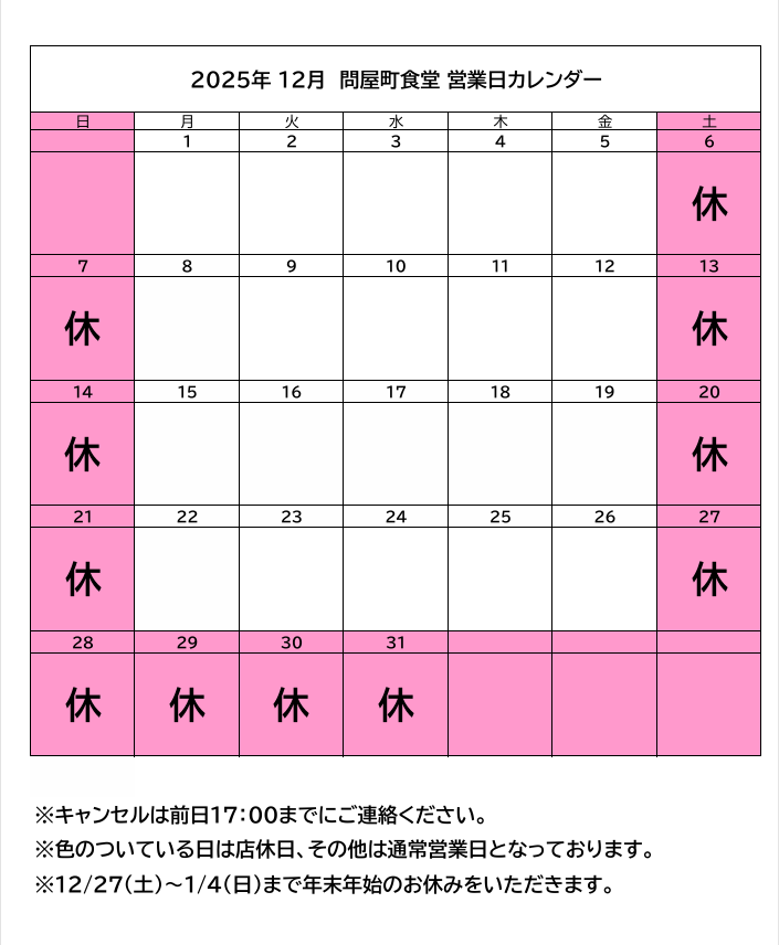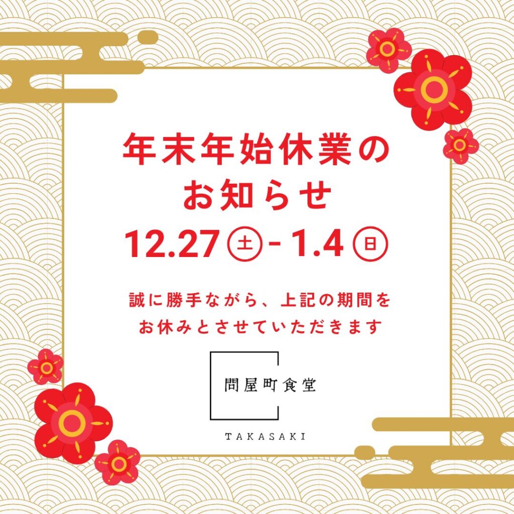 年末年始休み期間 12/27(土)~1/4(日)まで