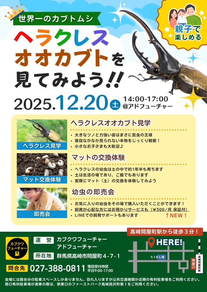 毎度たくさんの方々にご来場いただいているヘラクレスオオカブトイベントを12月20日(土)に開催することとなりました!